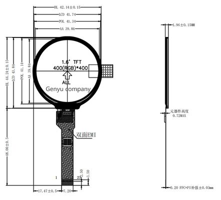| ขนาดโมดูล | 42.14 ((H) × 44.24 ((V) × 1.96 ((D) มม. |
